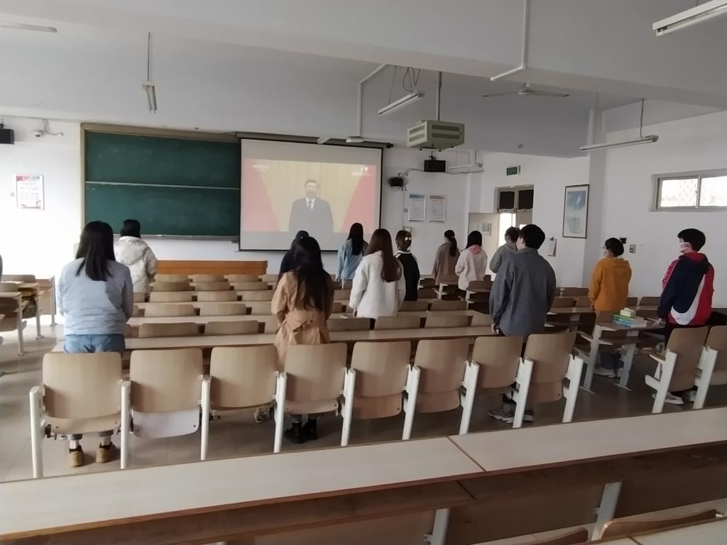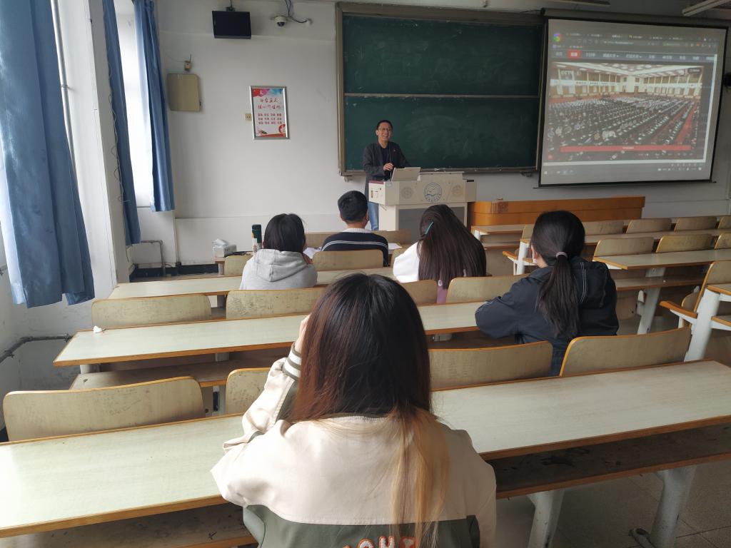 5月10日伟德体育组织40多名在校生在昌黎校区C307教室观看了现场直播,公司党委副书记副经理孙胜显、团委书记王明洁与同学们一起观看了直播。同学们各位就坐、全程佩戴口罩。会后,孙书记与同学们一起进行了思想交流。