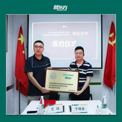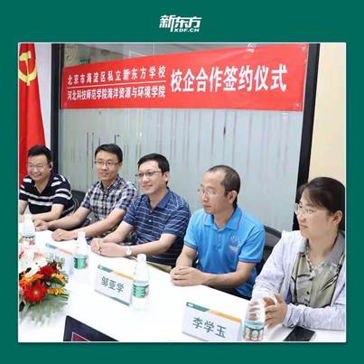 在北京市海淀区私立新东方公司,领导致辞后共同观看了双方的宣传视频,并就员工的培养、课程建设、教育实习、就业及未来发展等进行了深入探讨,最后双方进行签约。