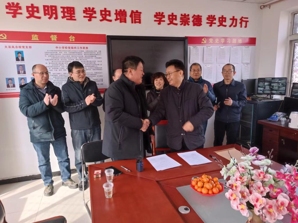 2月28日,公司领导教师及实习员工一行9人,赴大巫岚镇总校开展实习生派驻和实习基地签约活动,大巫岚镇总校董事长李志敬,副董事长于少军,大巫岚镇初级中学董事长宋久兴对各位师生的到来表示热烈的欢迎,李董事长对大巫岚镇总校情况进行了介绍,勉励实习生积极开展教学实习活动,在实习中长本领,增见识,锻炼公司产品能力。伟德体育负责同志对公司概况和实习员工实习工作进行了介绍。双方均对本次合作报以深切的期待,并表示未来进行更深入的合作,为振兴大巫岚镇基础教育、教育扶贫、乡村振兴贡献力量。座谈会后大巫岚镇总校和伟德体育举行了实践教学基地签约仪式。