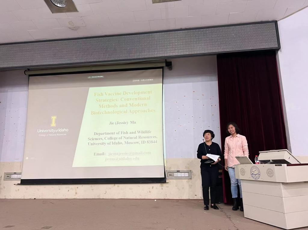会上,公司副经理张文香首先对优秀员工马杰研究员表示了欢迎,鼓励与会的同学好好学习,为母校争光。随后马杰研究员做了题为“Fish Vaccine Development Strategies: Conventional Methods and Modern Biotechnological Approaches(鱼类疫苗开发策略:传统和现代生物技术方法)”报告,马杰研究员提到随着水产养殖业高密度、规模化、集约化高速发展,病害已成为产业健康可持续发展的重大挑战,鱼类接种疫苗既可以防控水产病害发生、减少产业的经济损失,又可以减少或消除由于大量使用抗生素带来的健康危害、生态风险和水产品食品安全等问题,从而支撑水产养殖业健康、绿色发展。目前国内外鱼类疫苗开发主要包括灭活疫苗、减毒活疫苗、亚单位/合成肽疫苗和DNA /RNA疫苗。在报告中,她详细介绍了疫苗主要研究技术策略及相应的接种、递送方式,着重介绍爱达荷大学鱼类健康实验室研制并商业化的鱼类疫苗及其应用,以及国际疫苗审批管理的情况。